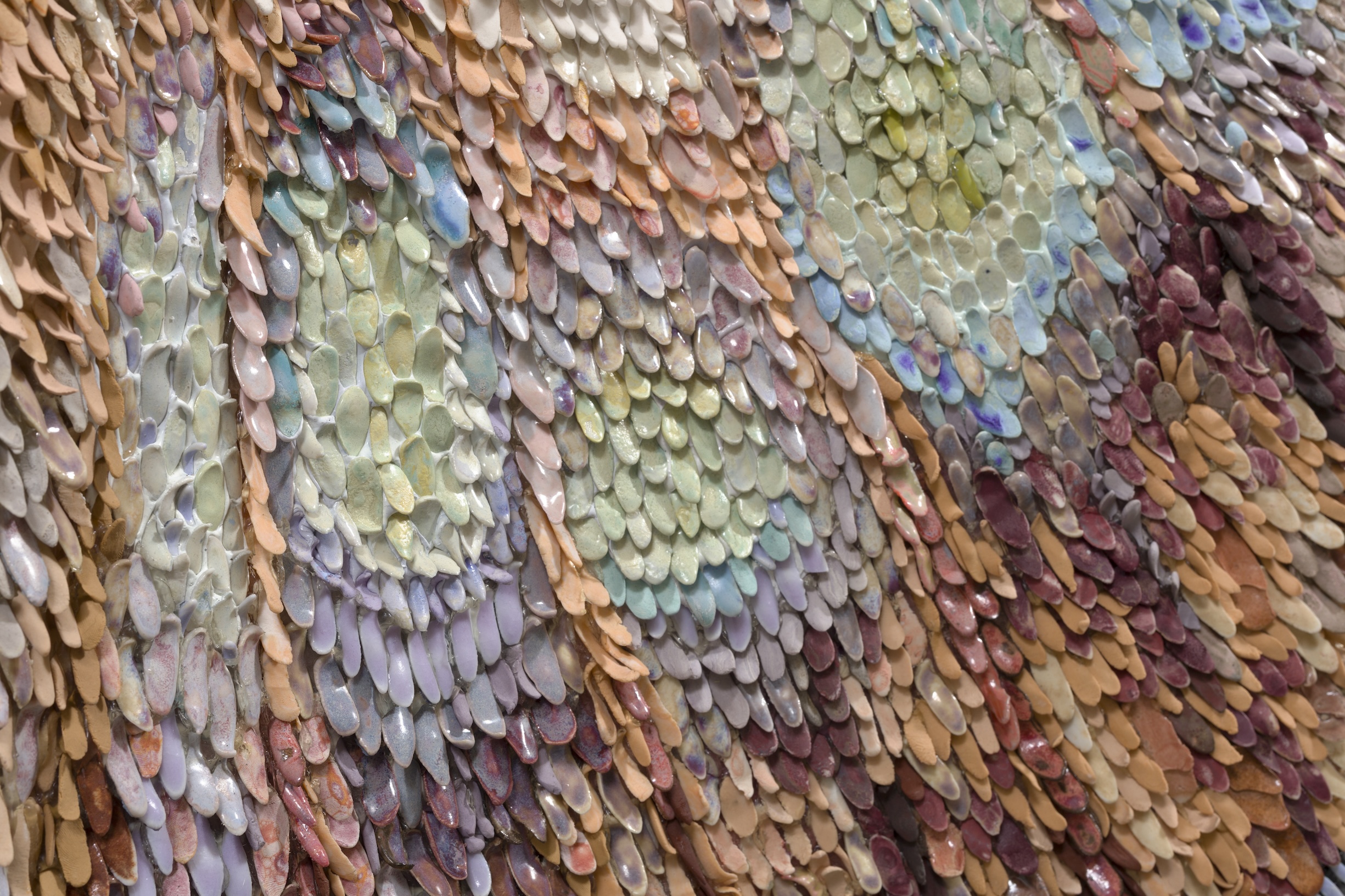 Porcelain, canvas, glaze, adhesives, hardware, pigment, dye, and thread